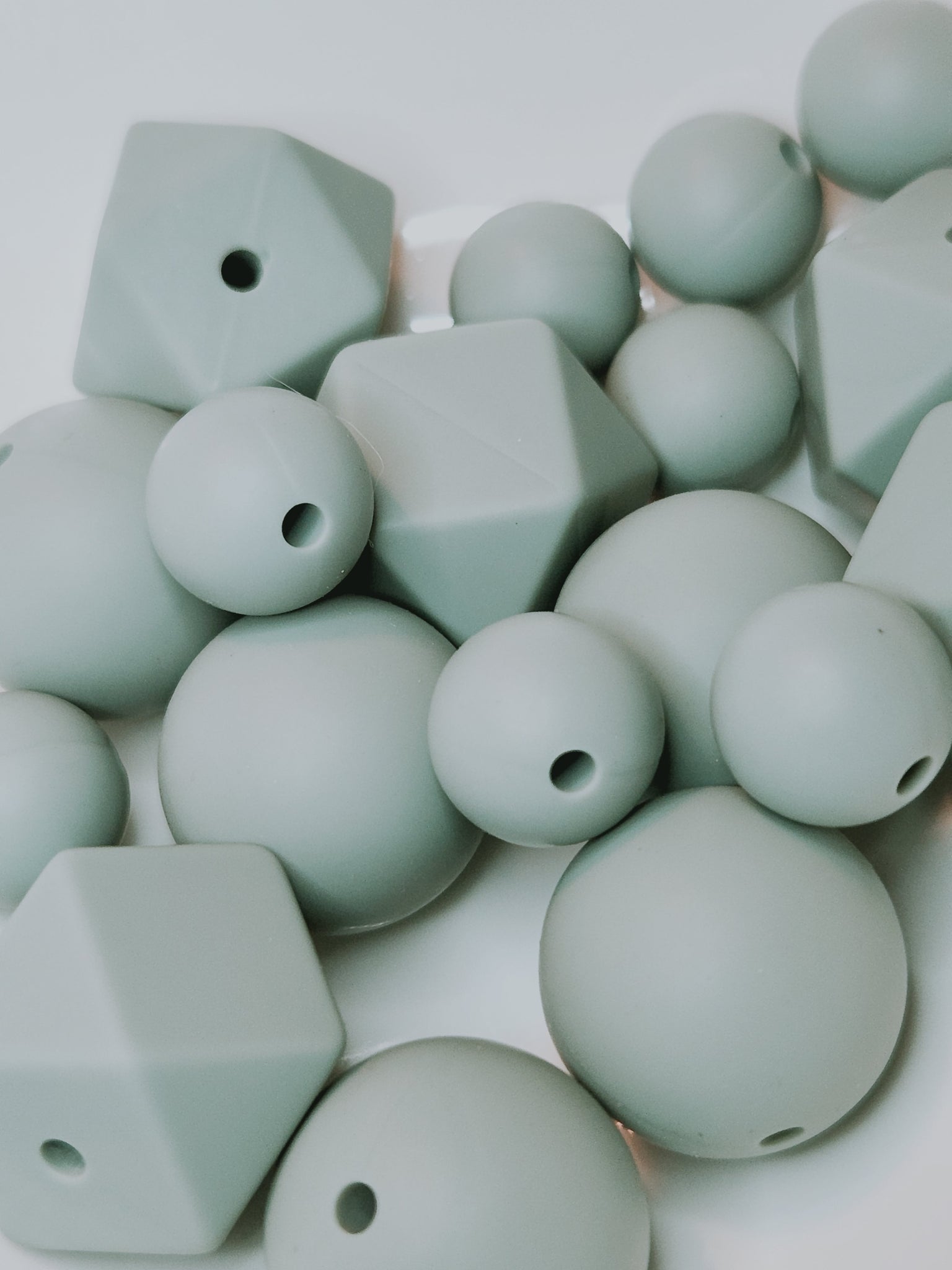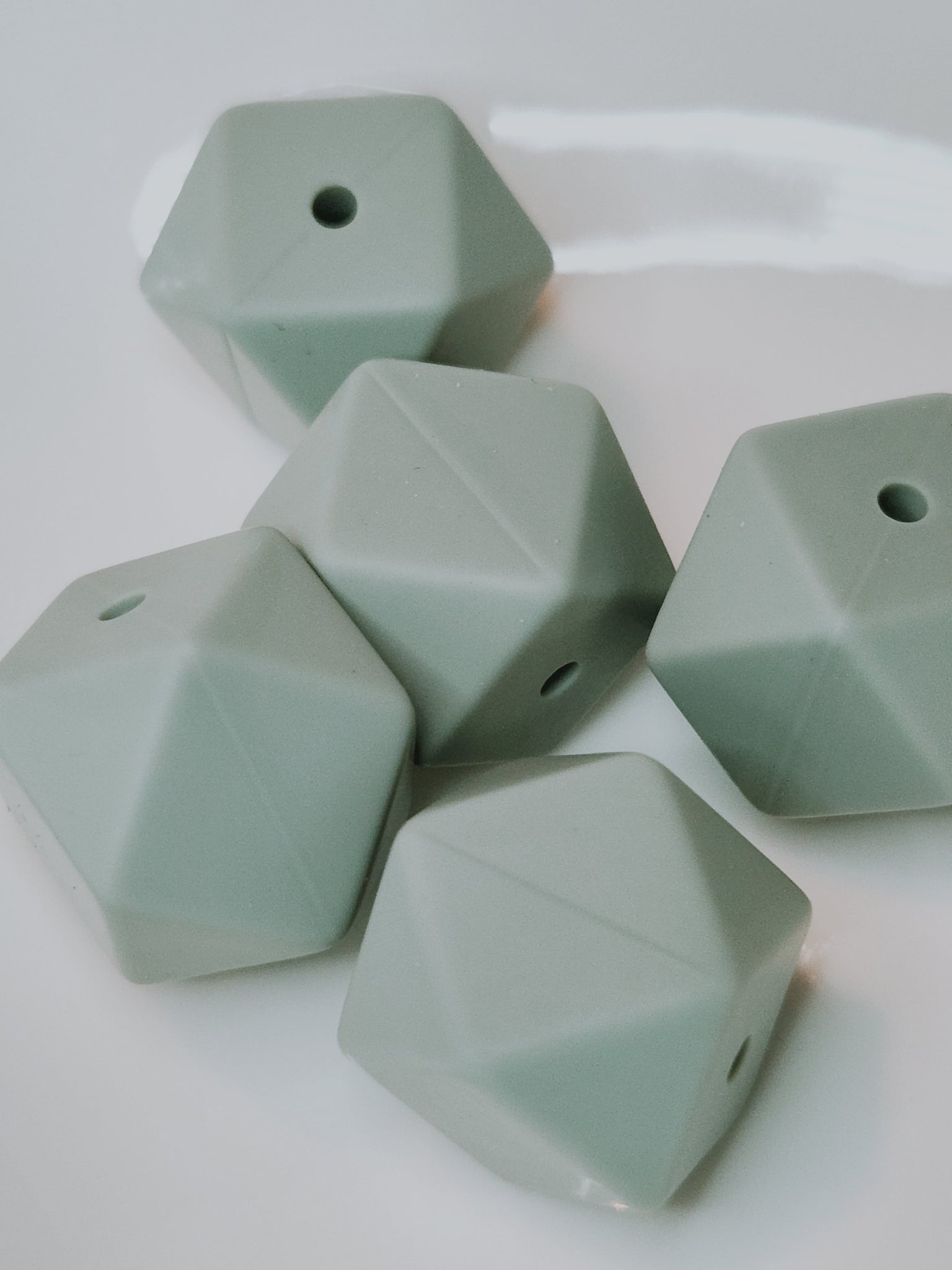 Silicone bubble gum beads come in 20mm, 12mm round beads, and 17mm hexagon sizes. Use the drop down menu to pick the size you’d like.